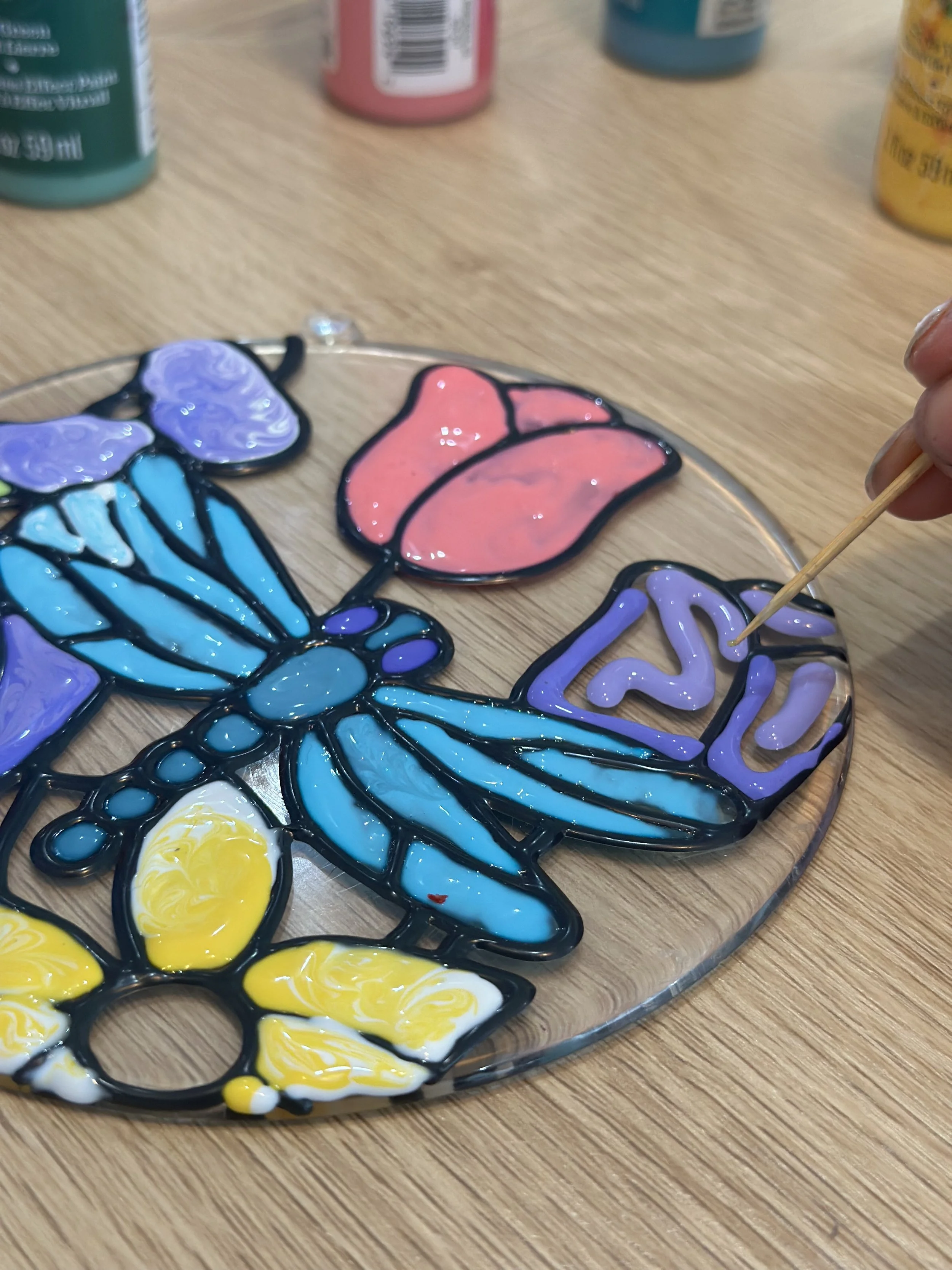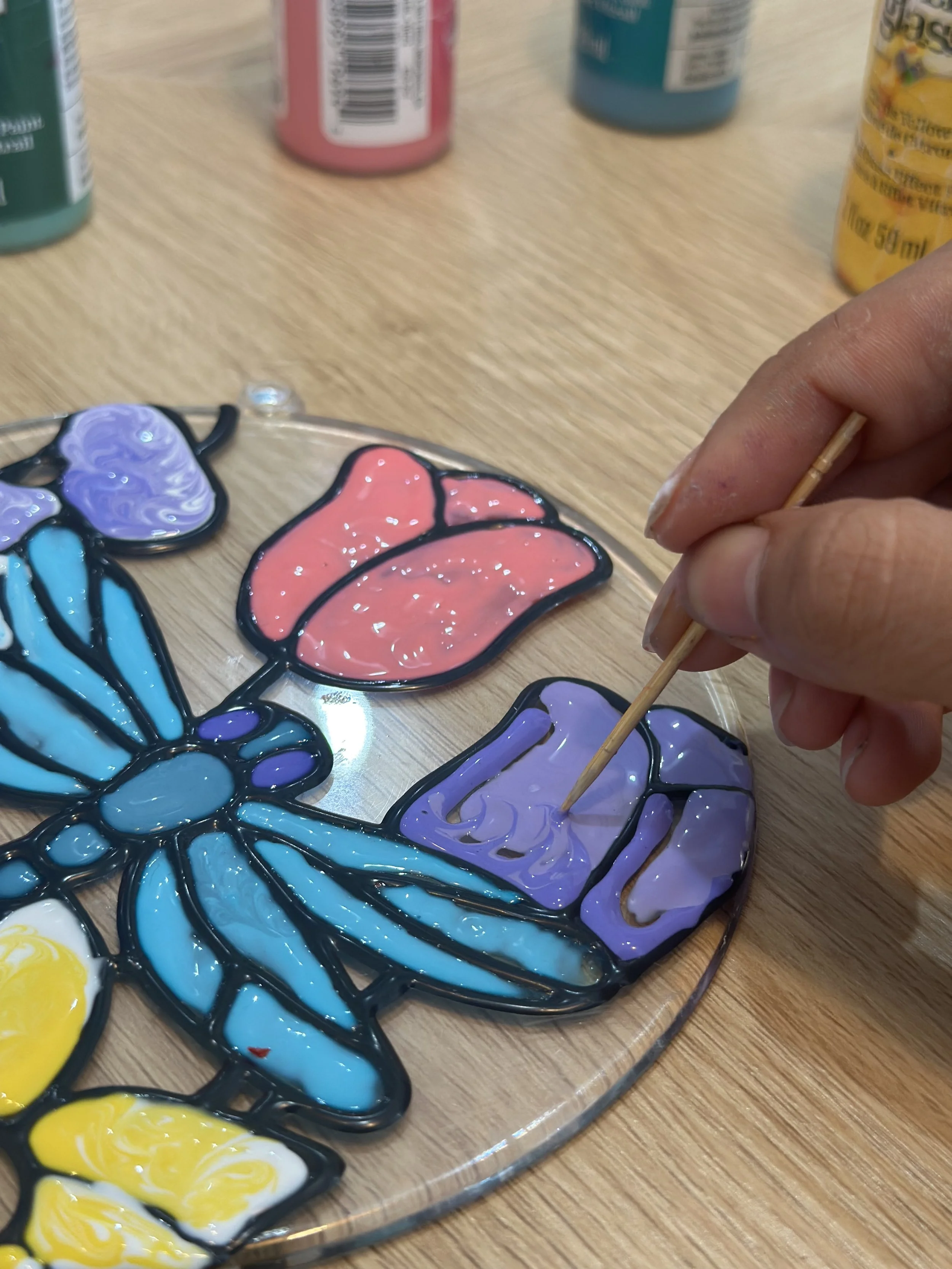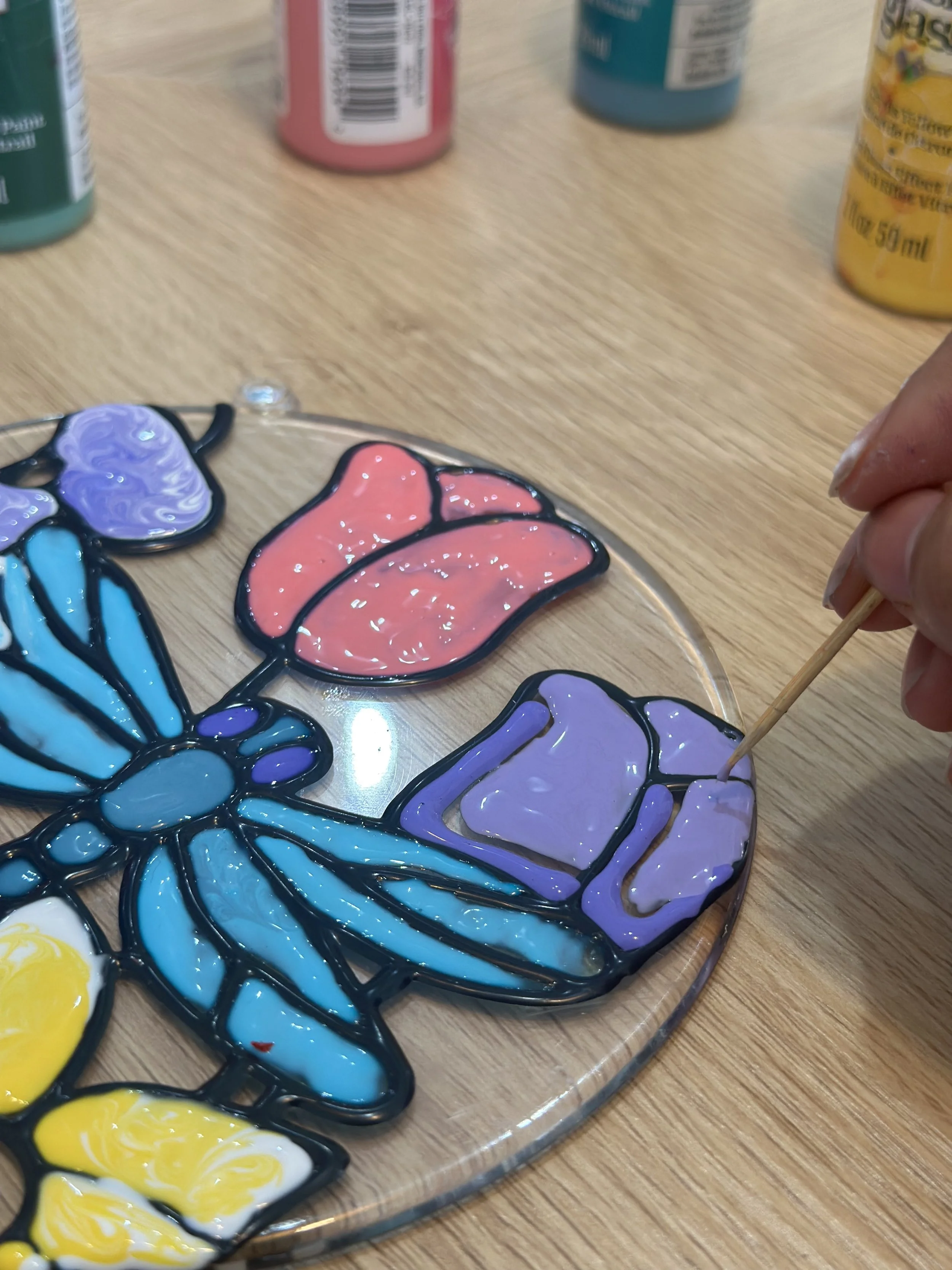 No worries—No drawing skills needed! We have a variety of designs on-site; from florals, animals, landscapes, and geometric shapes that mimic traditional stained glass. General admission includes a 6” canvas