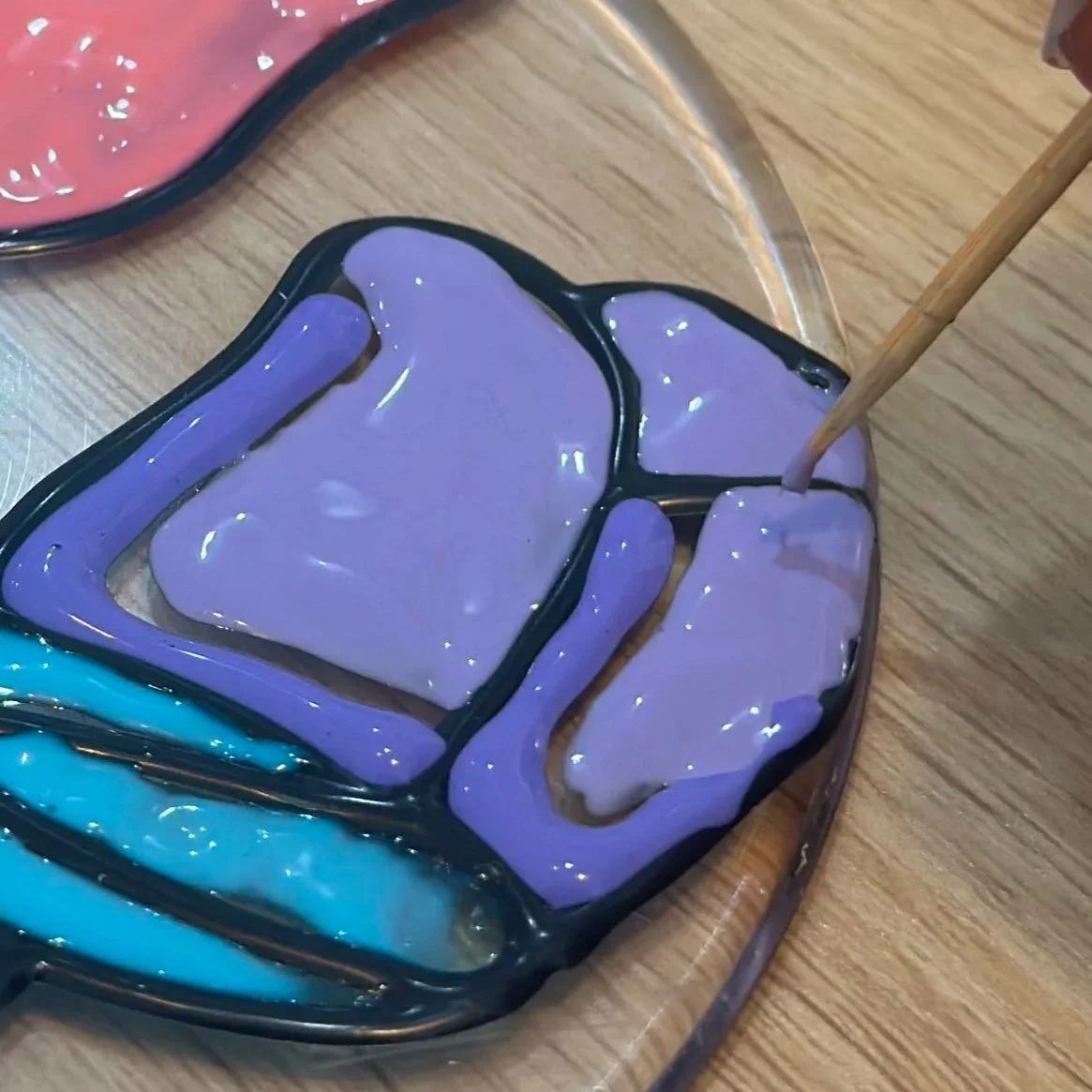We have over 30+ colors to choose from, using the physical color key allows you to see what colors look like once they are dry. Our Faux Stained Glass bottles do not need to be shook— keep in mind that the paint looks different wet v.s. dry so double check those colors!
