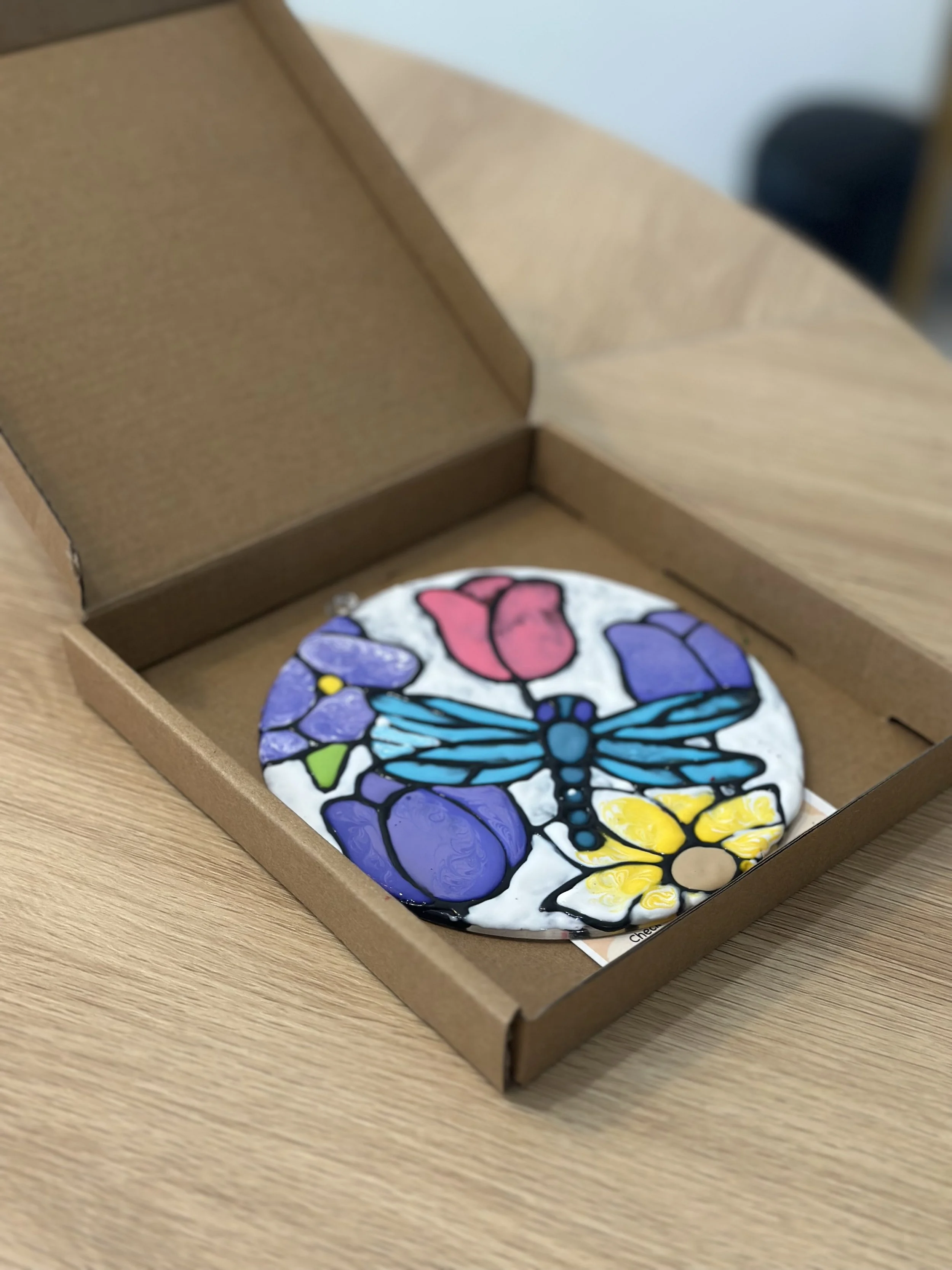 We have to-go boxes available near the supplies so you can take your piece home! Feel free to grab one and place your piece inside.