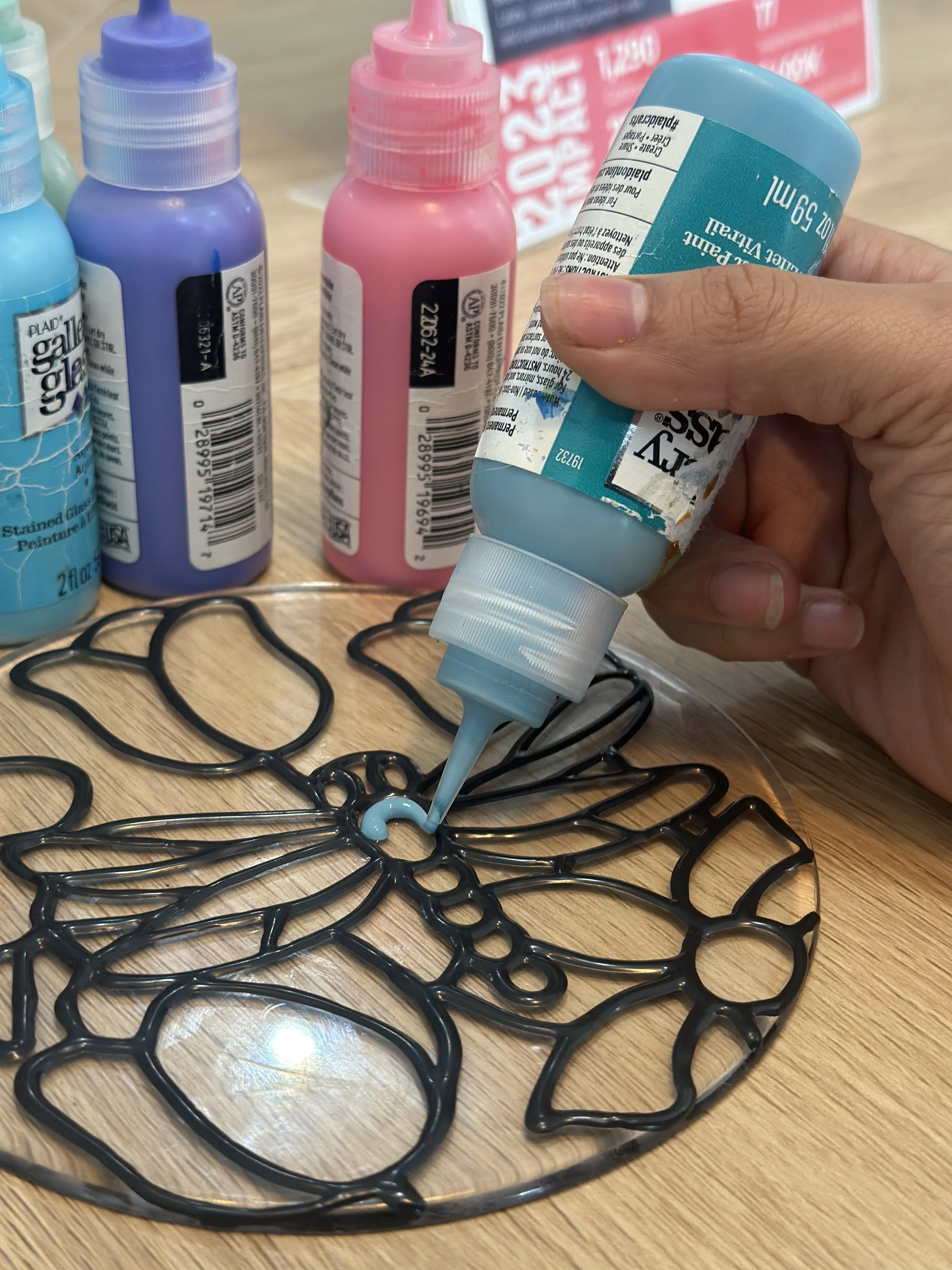 We have over 25+ colors to choose from, using the physical color key allows you to see what colors look like once they are dry. Our Faux Stained Glass bottles do not need to be shook— keep in mind that the paint looks different wet v.s. dry so double check those colors!